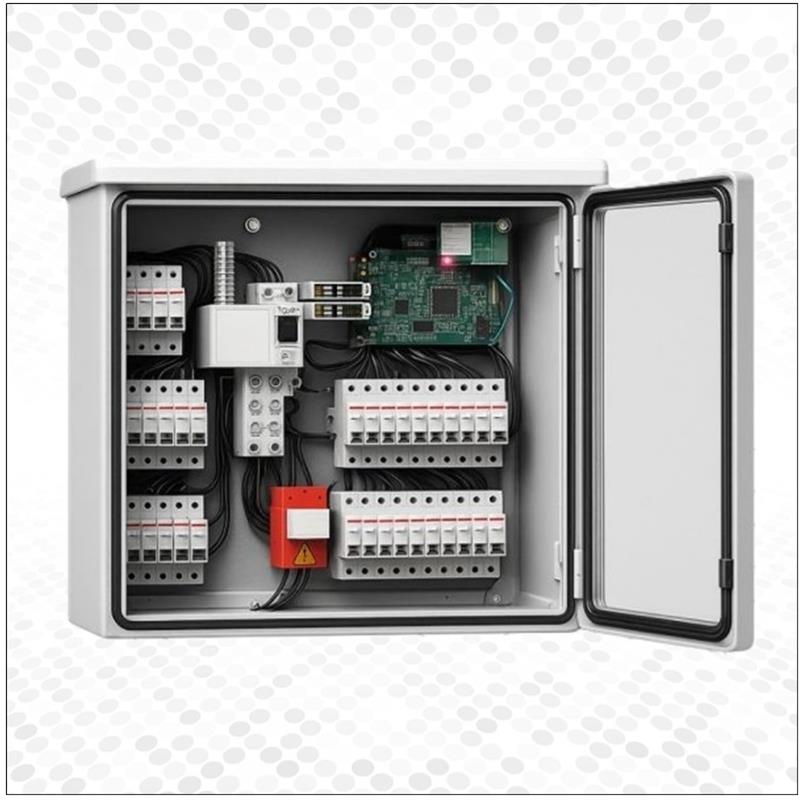 is an advanced combiner box that aggregates multiple solar PV string inputs into a single DC output while monitoring real-time performance data.